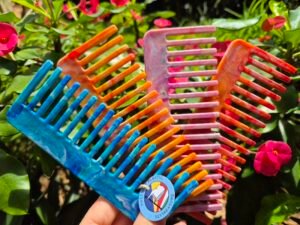 14 cm x 5,2 cm Flexible Combs with light „Seychelles“ engraving on both sides (depending on the material and colour pattern the engraving might not be well visible)