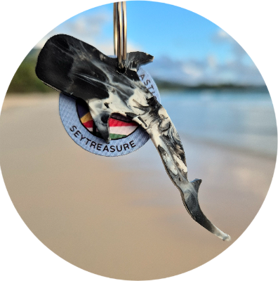 8,7 cm with light small „Seychelles“ engraving on one side, bottom (depending on the material and colour pattern the engraving might not be well visible)